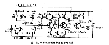 诊断器是一个RC串并联网络低频振荡器,经LC谐频放大的音频信号发生器见图,图中BG1、BG2、BG3均为3DG6D。