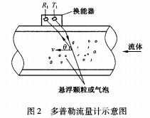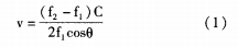 式中:v**体速度;f一晶体T1的发射频率;f2一晶体R1接收的频率;θ一超声波束与流体流向之间的夹角;C一声速。