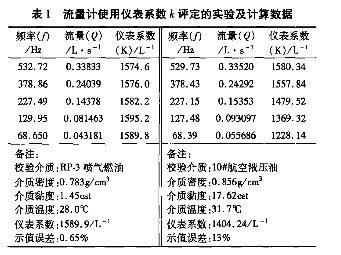 数据说明:为了更直观地探讨流量计在合理选择误差评定的方法以及由此涉及仪表计量特性等具体因素的影响,故在表1和表2中均分别以航空RP-3号喷气燃油(低黏度)、航空10号液压油(中黏度)为检定介质在相同的量程下检定分别出2组数据;表1中误差评定的计算公式来自JJG1037-2008《涡轮流量计检定规程》(以下简称规程)中(1)~(4),得出示值误差(线性度);表2中误差评定的计算来自*小二乘法运算公式算出值进行数据拟合求出理论值,*后得出仪表的引用误差。此计算公式来自为《规程》以外的误差评定方法。