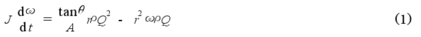 式中J为叶片转动惯量,θ为叶与轴线之间的夹角,r为涡轮叶片的平均半径,A为管道流量面积,ρ为流体密度,ω为涡轮的旋转角加速度,Q为通过管道的流量。