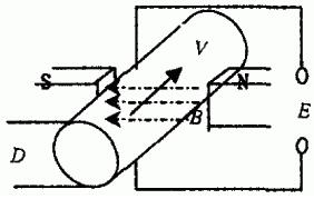 根据法拉*电磁感应定律,即导电液体在磁场中切割磁力线运动时,导体中产生感应电势(见图1),其感应电势的大小与磁感应强度、流体做切割磁力线强度等因素成正比。