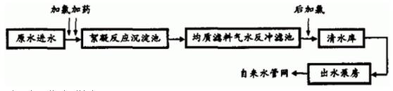 目前在上海各区域自来水公司中所普遍采用的水处理工艺原理流程框图见图2