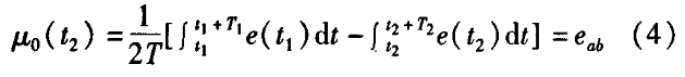 热力管网供香蕉视频APP下载网站一般都采用工频交流电源供电,其电源电压的幅值和频率的变化都会给热力管网供香蕉视频APP下载网站带来电源性干扰噪声。对电源电压的幅值变化,因采用多级集成稳压,一般而言电源电压的幅值变化对电磁流量的测量精度影响不大。当电源电压的频率波动时,虽然其波动范围有限,但对热力管网供香蕉视频APP下载网站测量精度影响较大。为了解决工频干扰问题,实现对流体流速感应电势e柚信号的准确测量,需利用以下基本关系:①励磁周期为工频周期的整数倍,即励磁频率为50/nHz(n为偶数);②正负励磁下的同相位采样。图2是对应低频矩形波励磁形式下的典型电势信号形式,按上述关系在一个励磁周期下,若假设t。和t:点为工频干扰的等效干扰点,且采样宽度T=T1=T2,则e –ab的基本算式为:,