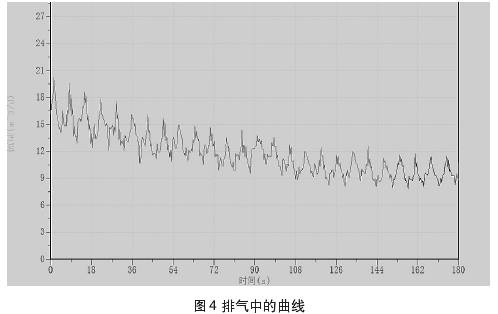 图4、图5中所示曲线为测量过程中所截取的集流伞中所聚集的气相,通过排气通道排出时与排出后的测量曲线。测试过程中录取到的仪器排气的过程,当集流伞完全支开后仍需要开启流量测试进行实时检测,否则可能会录取资料失真。