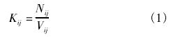 式中:Kij为*i检定点*j次检定的仪表系数,L-1或(m3)-1,其中,i=1,2,3,…,m,m为检定点数,m≥3,j=1,2,3,…,n,n为检定次数,n≥3;Nij为*i检定点*j次检定时流量计显示仪表测得的脉冲数;Vij为*i检定点*j次检定时标准装置测得的实际流量,L或m3。