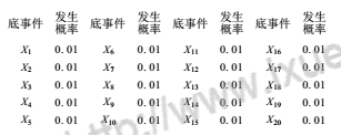 为了计算系统顶事件的发生概率和对底事件进行重要度分析,必须知道底事件发生的概率。现根据经验对各底事件发生的概率作如下估算: