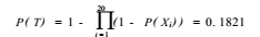 将上表底事件发生的概率代入P(T)的计算公式,则得顶事件发生的概率为: