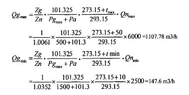 已知介质的*低压力、*高温度和所需的*大标准状况下的流量,计算*大工况下的流量: