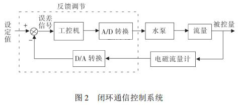 通信控制系统由工控机、变频器、水泵、数据采集卡、消防香蕉视频APP下载网站等组成。在整个热量表耐久性试验装置中,消防香蕉视频APP下载网站与被试验热量表串联在试验管路中。系统设定流量值 qs,通过工控机发送信号给变频器,来控制水泵运转,系统通过研华数据采集卡 PCI1711 将采集到的消防香蕉视频APP下载网站当前瞬时流量值反馈给工控机,工控机将返回流量值与设定流量值qs进行比较,从而确定是否需要重新调整变频器频率控制水泵转速。此过程是一个完整的闭环 PID 控制过程,其闭环控制过程如图 2 所示。 2. 2 管路切换系统管路切换主要由冷热水箱、水泵、开关阀等组成。要实现热量表耐久性 4000 次冷热冲击试验,需要实时控制管路中热水与冷水的交替使用。