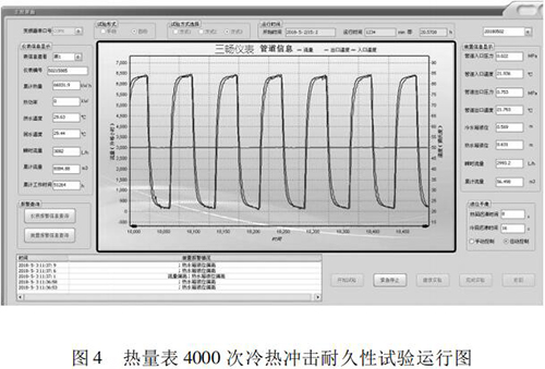 本文研究的 4000 次冷热冲击试验的实现具有以下特点: (1)基于“工控机 +水泵 + 消防香蕉视频APP下载网站”的闭环控制系统,实现了流量自动反馈调节,满足试验要求; (2)通过四个开关阀的时序切换,自动控制试验温度,很好的完成了 4000 次温度冲击试验; (3)通过“工控机 + 数据数据采集卡”的数据采集系统,实时监控试验过程中的流量、温度、压力等相关参数,实现试验方式的自动控制,并能对试验数据进行分析与评定。 (4)试验的全过程为智能自动化,可无人员留守看护。试验结果可直接反映出热量表在长时间运行后的可靠性。为我国热量表耐久性试验研究提供检测手段,为促进产品质量提升做好技术保障。