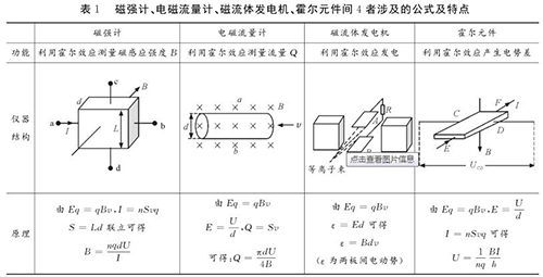 易错点2:磁强计、循环香蕉视频APP下载网站、磁流体发电机、霍尔元件间的区别与联系磁强计、循环香蕉视频APP下载网站、磁流体发电机、霍尔元件都是利用电磁场对带电粒子的偏转效应,并且稳定时电场力与磁场力均达到平衡。很多学生容易将其混淆,遇到问题常常搞不清原理,乱代公式,笔者特将4者涉及的公式及特点等做一对比区别如表1所示。