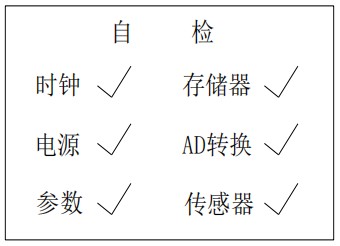 如果仪表运行错误,可通过进入该选项,查询具体的仪表运行错误,打钩为正常,打叉为错误。另仪表启动时执行自检,如果有错误将显示此界面。在仪表运行时,也可进入该选项查询仪表运行状态。