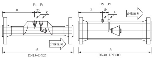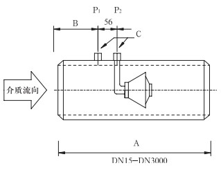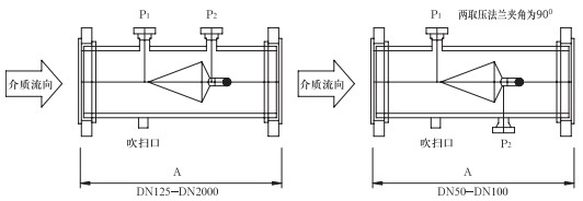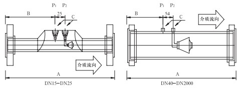 取压口法兰公称直径(标准设计)为DN40,也可以依据用户要求选取法兰直径。