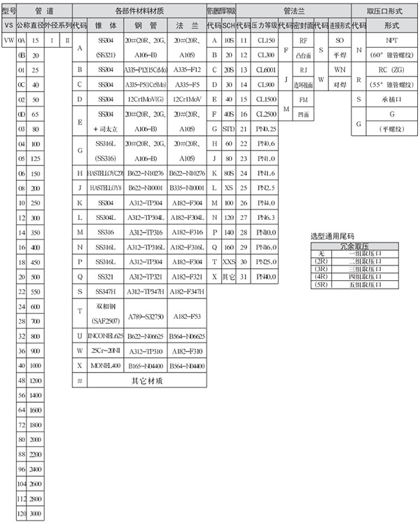 3.管道式SO、WN法兰连接(VS、VW)选型