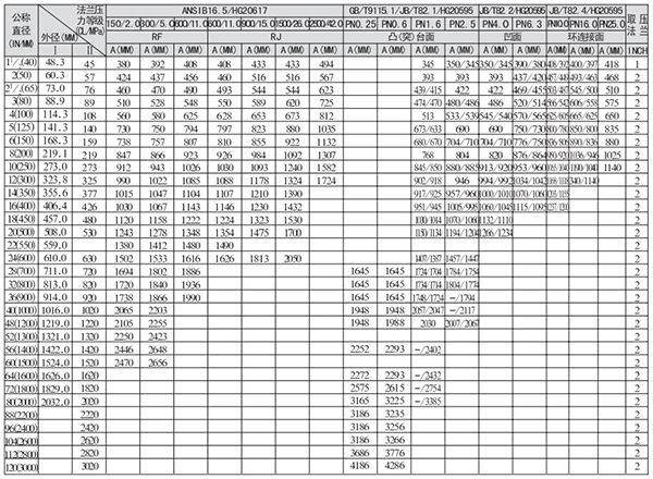 3.DN>600法兰标准为ANSIB16.47(HG20623)