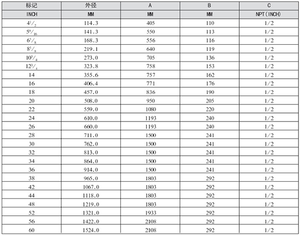长输管道尺寸表