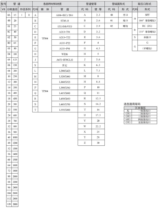 总长度允许误差范围:φ114.3-273,±4mm;DN323.8-610,±6mm;DN660-1524,±7mm。长输管道公称直径从“4 1/2~60”,只有一个外径系列,故选项时不选外径代码。