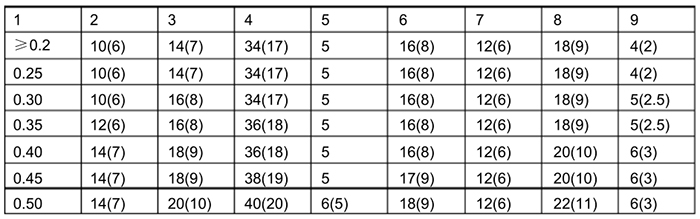 (7) 节流件上游侧*一阻力件和*二阻力件之间的直管段长度可按*二阻力件的形式和 β =0。7(不论实际 β值是多少)取表一所列数值的 1/2。
