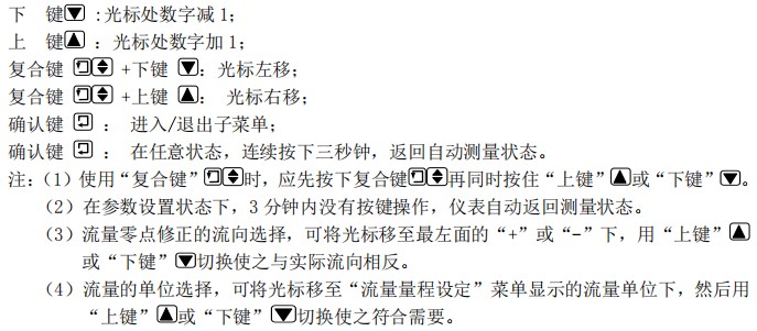 注意:仪表用 5 位有效数字显示流量值,末位数值的后面显示有流量的单位