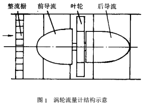 实验采用口径DN=100mm,量程Q=60~600m³/h的涡轮流量计,在吸气式试验台上分别对介质为空气(常压)、不同形状整流栅、不同叶片数叶轮和不同结构的后导流器进行测量。