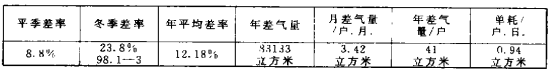 从谦益里96、97年计量统计资料分析:97年6月-11月份夏秋季平均差率8.8%,98年l-3月份冬季平均差率23.8%,97年6月-98年5月一年平均差率12.18%,年供销差气量83133立方米。根据该站年差气量83133立方米和该站2000户 用户测算,可得出平均每户每年差气量41立方米和平均每户每月差气量3.42立方米的结论,依此推算全公司22万户用户年差气量约达902万立方米,折人民币631万元,月差气量75.2万立方米,折人民币52.6万元。