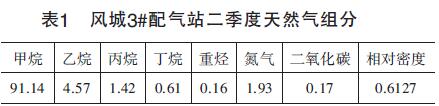 2015年7月,新疆油田公司风城3#配气站的涡轮流量计在现场验收时就进行了此项内容的验证,对该站在用的3套分体式温压补偿型香蕉视频三级(双显示式)分别选取了3组数据(工况压力、工况温度、工况压缩系数、标况压缩系数、工况流量、标况流量),将流量计测量的标况流量与由气态方程计算出的理论标况流量进行对比,得出两者误差,根据误差判断在传输过程的失真程度。按**标准要求对风城3#配气站取样得到的天然气组分报告,详细数据如表1所示。根据表1中的天然气组分,以及介质的工作压力、工作温度可计算出工况压缩系数Zg,根据**标准中天然气标准参比条件,可计算出标况压缩系数Zn。