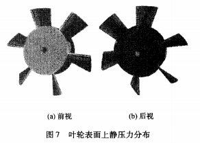 计算流体介质为水,其质量密度等于1.255kg/m3,运动黏度为1.46×10^-5m2/s,平均流速为3m/s。计算结果表明,叶轮的平衡转速为 1686r/min。